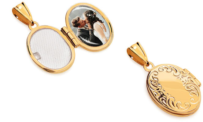 Ovális fotómedál díszmintával, 9K, modell IZ17287HR