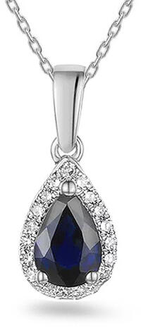 A medált egy titokzatos körtére vágott zafír, 0,540 ct súlyú és tizenkilenc, összesen 0,080 ct gyémánt díszíti, H szín és SI1 tisztaság. A függőszem átmérője 3 mm, a medáldísz szélessége 6 mm, magassága a láncszemet is beleértve 15 mm. A kövek iZlato® eredetiségi tanúsítvánnyal rendelkeznek.