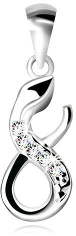 A fényes 9K fehér arany medál kígyó alakú, amely nyolcas alakba van csavarva. A testén apró kerek átlátszó cirkóniák emelkednek ki. A feje és a farkának a többi része fényes és sima felületű. A láncra kerülő szem hosszúkás és felfelé szélesedik. A medál mérete: 7 x 17 mmA láncra kerülő szem szélessége: 2,5 mmA medál súlya: 0,5 gFémjelzéssel ellátva. Az ár