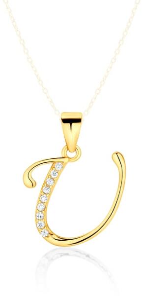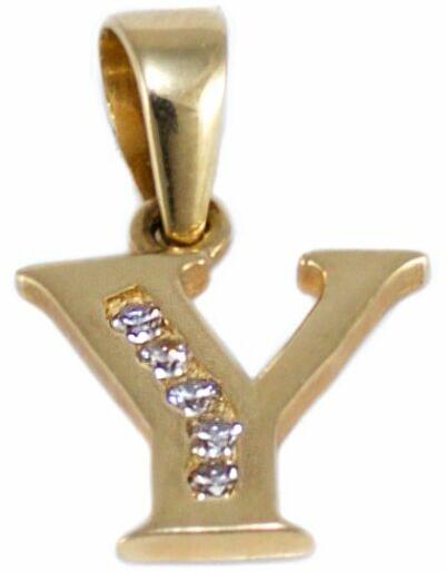 Kedves és személyre szóló ajándék lehet ez a fehér cirkónia kövekkel díszített arany "Y" betű medál.