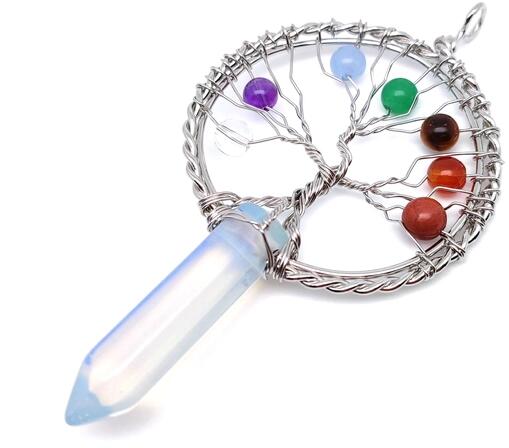 Opalit medál drót (életfa csúcs ezüst Kína Ásvány medál) Egyedi ásvány ékszer.
