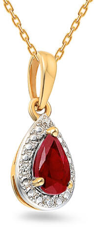 A finom vonalakat csepp alakú dísz díszíti, melynek közepén egy 0,260 ct súlyú rubint helyeztek el, körülvéve négy 0,010 ct össztömegű gyémánttal, H színnel és SI1 tisztasággal. A gyémántok iZlato® eredetiségi tanúsítvánnyal rendelkeznek.