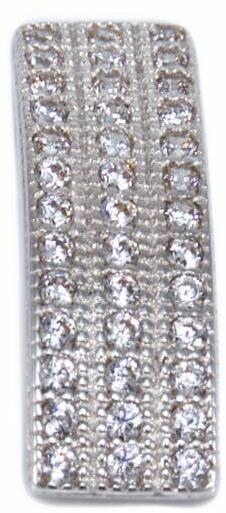Modern stílusú, íves, cirkónia kősorokkal ékített, ródiummal bevont arany futó medál.