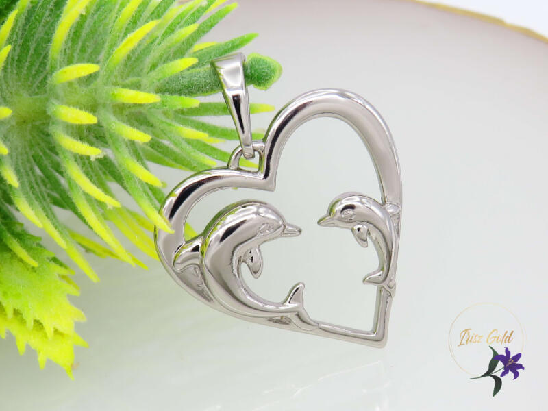 Gold Filled páros delfin medál Szin: rodium Méret:25x20mm A forgalmazott divatékszerek alapanyaga nikkel és ólommentes ezért többnyire nem okoznak allergiás tüneteket, nyugodtan hordhatják fémérzékeny emberek is. Általában nem színezik a bőrt és más divatékszerekhez képest nagyságrendekkel jobb kopásállósággal rendelkeznek. A fehér (ezüst) színű ékszerek ugyanezzel