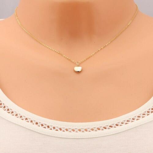 A kombinált 14K arany medált egy kis, szimmetrikus szív alkotja, fényes és enyhén kidomborodó felülettel. A szív közepén egy függőleges vonal húzódik, amely elválasztja a fehér és sárga aranyból készült részeket. A szív egész kerületét apró bemetszések szegélyezik. A láncra kerülő szem vékony és ovális alakú. Medál méretei: 8 x 8 mmMedál súlya: 0,3 gLáncra