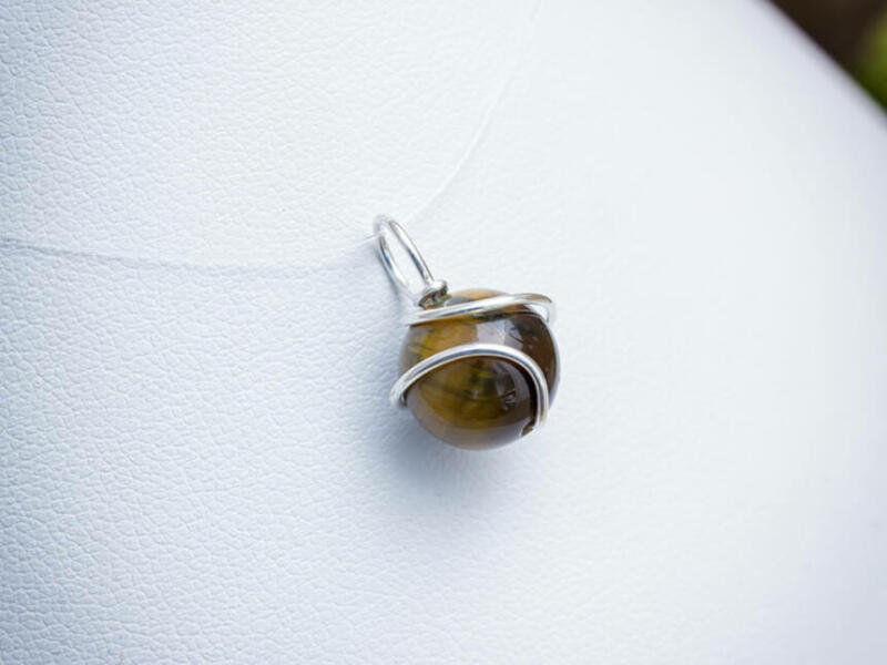 Szolidan elegáns ásvány medál azoknak a hölgyeknek, akik a visszafogott elegancia hívei a munkahelyükön, és a mindennapokban is. Alkalmi öltözékéhez is tökéletes. Örök klasszikus ajándék, melyet bátran adhatunk ajándékba olyanoknak, akikről tudjuk, kedvelik az ásványokat. A 1 0 mm-es valódi tigrisszem ásvány gyöngyöt dekoratívan öleli körül az ezüst színű drót