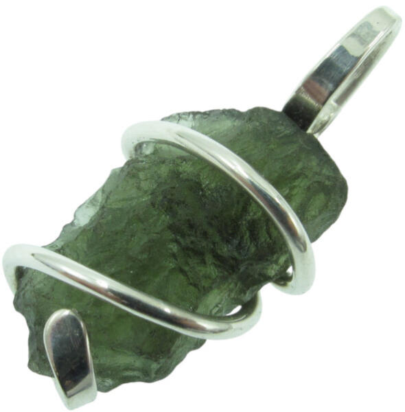 Kihasználtam a valódi moldavit meteorit darabka természetes formáját, ezüst drótba foglalva alkottam belőle medált. Az ezüst drót huzal stabilan körbe öleli a meteoritot anélkül, hogy a követ fúrni, ragasztani, vagy csiszolni kellett volna. A moldavit gyönyörű, áttetsző palackzöld színű, felülete rá jellemzően "rücskös". A Moldavit vélt hatása