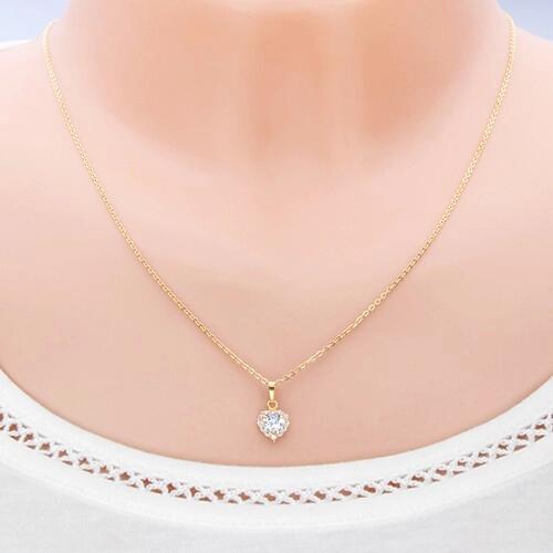 A sárga 14K arany medált egy szimmetrikus szív alkotja, apró, átlátszó cirkóniákkal díszítve a kerületén. Középen egy csiszolt, szív alakú, átlátszó árnyalatú cirkónia helyezkedik el. A láncra kerülő szem hosszúkás alakú, fényes és sima felületű. Medál méretei: 8 x 8 mmMedál súlya: 0,56 gLáncra kerülő szem szélessége: 3 mmFémjelzéssel ellátott. Medál l