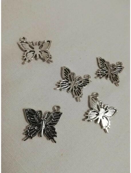 2x2 cm-es, ezüst színű, pillangó formájú, fém medál. Nyakláncokra, karkötőkre, fülbevalónak, egyéb dekorációs kiegészítőnek... Az ár egy db termékre vonatkozik!
