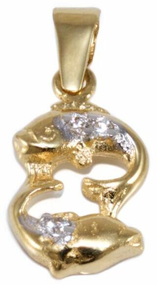 Modern stílusú, kedvelt fazonú, könnyű súlyú, de mutatós, ródiummal és cirkónia kővel ékített "Halak" horoszkópos arany medál.