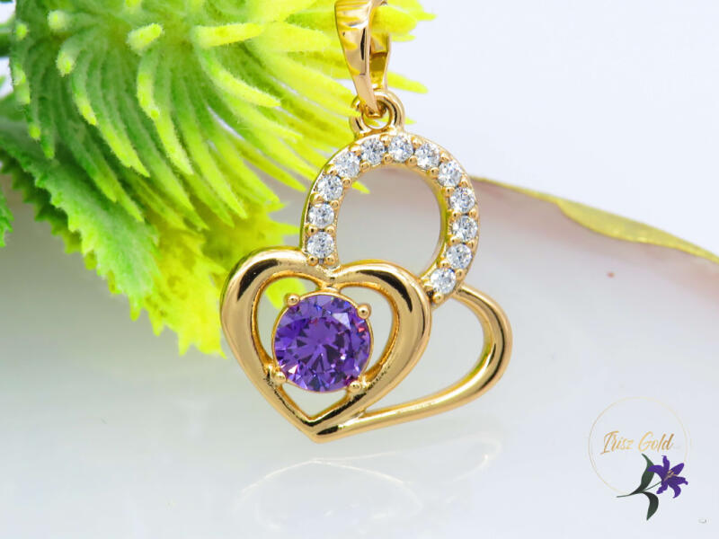 Gold Filled gyönyörű szíves medál lila cirkóna kővel Szin: 18K Medál:25x15 mm A forgalmazott divatékszerek alapanyaga nikkel és ólommentes ezért többnyire nem okoznak allergiás tüneteket, nyugodtan hordhatják fémérzékeny emberek is. Általában nem színezik a bőrt és más divatékszerekhez képest nagyságrendekkel jobb kopásállósággal rendelkeznek. A fehér (ezüst) szí
