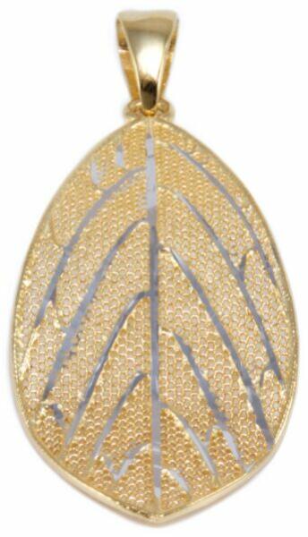 Modern stílusú, kedvelt fazonú, ródiummal díszített, áttört kialakítású, különleges levél arany medál.