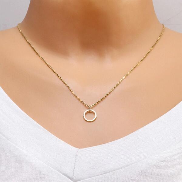 A 14K sárga aranyból készült medál egy kis gyűrű vékony körvonal. A gyűrű tükörsimára csiszolt felülettel rendelkezik. A medál ovális alakú lánckapoccsal rendelkezik. Medál átmérője: 10 mmMedál tömege: 0,18 gA kapocs szélessége: 2 mmFémjel - van. A lánc nem tartozék!