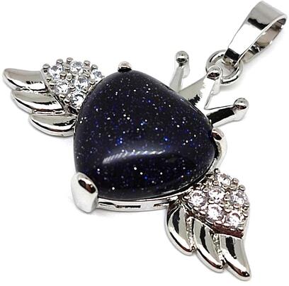 Goldstone kék medál (szárny szív fém Kína Ásvány medál) Egyedi ásvány ékszer.