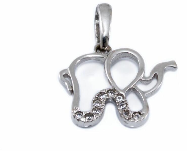Modern stílusú, kedves darab ez a ródiummal bevont, fehér cirkónia kövekkel díszített, áttört kis elefántos arany medál.