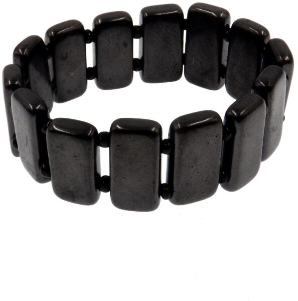 Természetes sungit / shungitból készült gumis karkötő, téglalap csiszolással. A karkötő mérete választható, az ár a méret függvényében változik. A shungit, a periódusos rendszer valamennyi ásványi anyagát tartalmazza. Ritka szén alapú ásványként fullerénekből, -fullerén gömbökből, vagy fullerén csövekből áll. Minden egyes apró fullerén gömb 20-500 szénatom