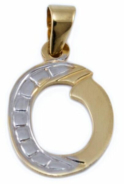 Klasszikus és kedvelt fazonú, ródiummal díszített, kétszínű arany "O" betű medál.