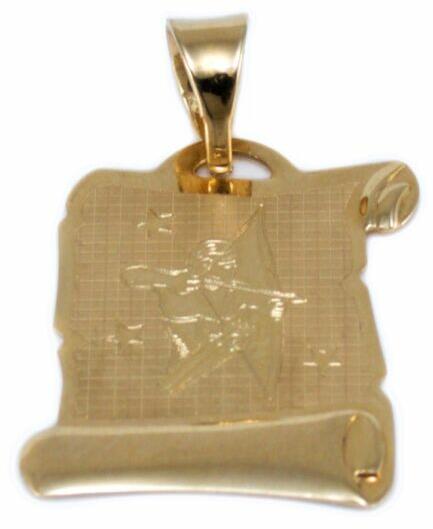 Klasszikus és kedvelt fazonú, mattítással díszített, vékony lap pergamenes "Nyilas" horoszkópos arany medál.