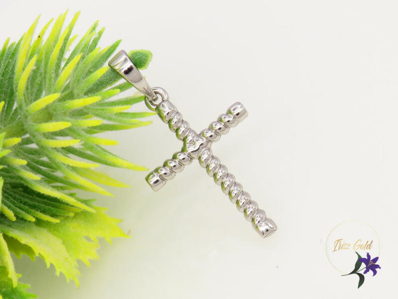 Antiallergén kő nélküli kereszt medál Szin: rodium( ezüst) Méret:30x16mm A forgalmazott divatékszerek alapanyaga nikkel és ólommentes ezért többnyire nem okoznak allergiás tüneteket, nyugodtan hordhatják fémérzékeny emberek is. Általában nem színezik a bőrt és más divatékszerekhez képest nagyságrendekkel jobb kopásállósággal rendelkeznek. A fehér (ezüst) színű é
