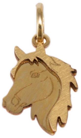 Kedvelt fazonú, véséssel és mattítással díszített lófejet ábrázoló arany medál.