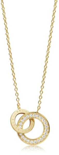 A 14K arany medál egy vékony sávból áll, amelyet rövid pálcák díszítenek. A csillogó kerek átlátszó cirkóniák a gyűrű kerületén vannak elhelyezve. Az apró cirkóniák pálca alakú karmokkal ellátott, négyzet alakú foglalatokba vannak ágyazva. A medálhoz tartozó láncra kerülő szem felfelé szélesedik. A medál mérete: 9 x 10 mmA láncra kerülő szem szélessége: 1