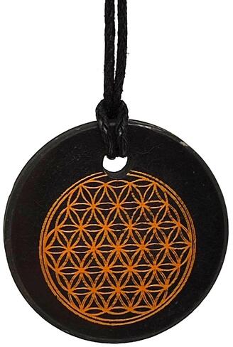 Shungit medál (életvirág nyomott Oroszország Shungit) Egyedi ásvány ékszer.