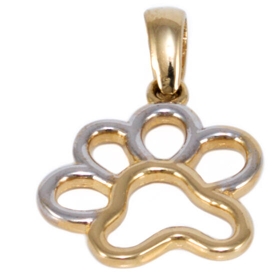 Modern stílusú, kedvelt fazonú, ródiummal díszített, áttört kialakítású, mancs arany medál.