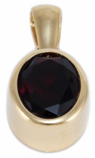 Klasszikus és kedvelt fazonú, körbe foglaltú, ovális gránát kővel ékített arany medál.