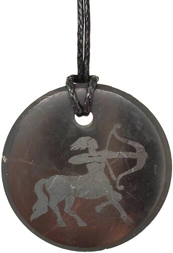 Shungit medál (gravírozott nyilas Oroszország Shungit) Egyedi ásvány ékszer.