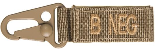 Karabiner vércsoport jelzéssel. Felakasztásra szolgál, életmentő információt nyújt. Szalag: 100% poliészter, Karabiner: cinkötvözet. Méretek: 11x3,7cm, Súly: 22g. Felhasználás: kulcsokra, pénztárcára, övre, stb. Előnyök: merev kivitelezés.