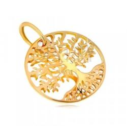 A 14K sárga arany medál kör alakú, amelyet enyhén kidomborodó részek alkotnak kivágott szétágazó fával - az élet szimbólumával. A medál kétoldalas, közepe üreges. A láncra kerülő szem vékony és ovális alakú. Medál átmérője: 14 mmMedál súlya: 0,5 gLáncra kerülő szem szélessége: 2 mmFémjelzéssel ellátott. Medál lánc nélkül.