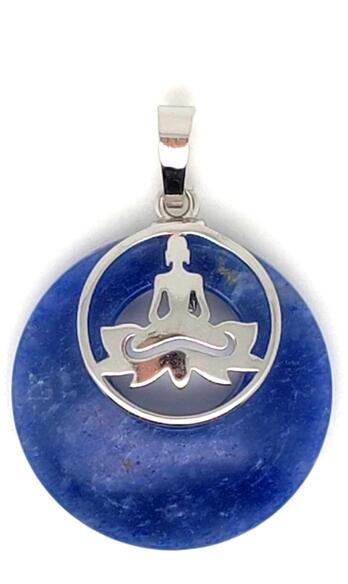 Kvarc medál (buddha fánk ülő kék Kína Ásvány medál) Egyedi ásvány ékszer.