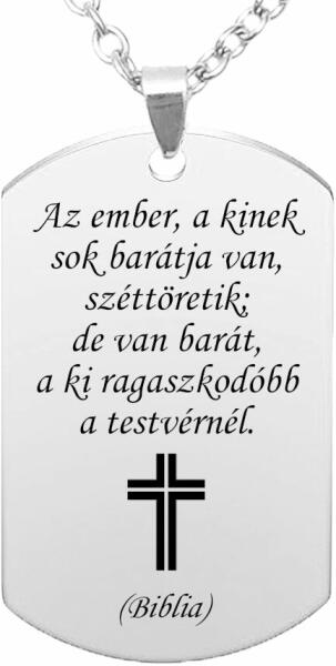 Prémium minőségű ezüst nyaklánc medállal. Ezüst szín. Ródium bevonat. AAA kategóriás foglalt cirkónia kő. Gravírozható medál! Különleges minőségű gyári díszcsomagolás. Ékszer anyaga : Sterling ezüst Finomság : 925 ezrelék Szín : ezüst Lánchossz : 60cm Medál méret : 35mm x 9mm Kövek : AAA minőségű cirkónia (foglalva) Csomagolás : gyári díszdoboz Garancia :