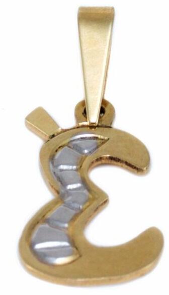 Modern stílusú, kedvelt fazonú, ródiummal és véséssel díszített, kétszínű arany "É" betű medál.