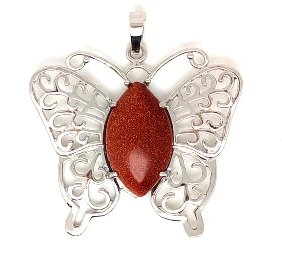 Goldstone vörös medál (pillangó fém Ásvány medál) Egyedi ásványból készült termék.