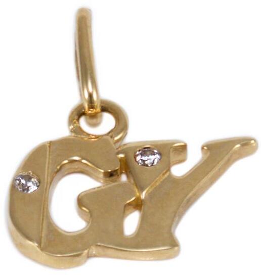 Klasszikus és kedvelt fazonú, cirkónia kővel ékített, kicsi arany "GY" betű medál.