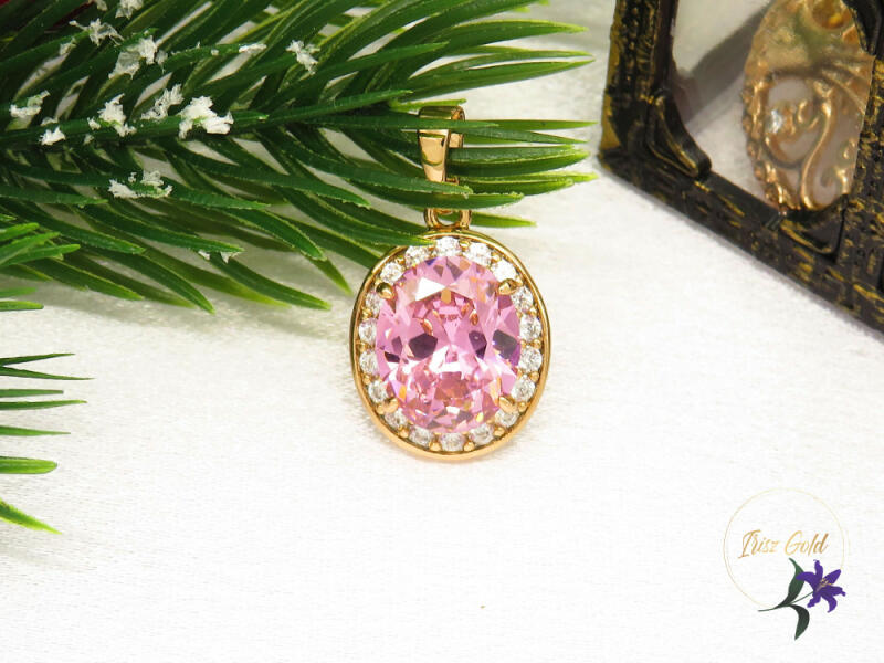 Antiallergén kerek rózsaszín köves medál körbe cirkónia kövekkel díszítve Szin: 18K Méret: 22x14mm A forgalmazott divatékszerek alapanyaga nikkel és ólommentes ezért többnyire nem okoznak allergiás tüneteket, nyugodtan hordhatják fémérzékeny emberek is. Általában nem színezik a bőrt és más divatékszerekhez képest nagyságrendekkel jobb kopásállósággal rendelkeznek