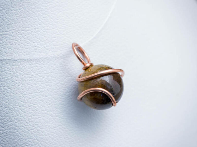 Szolidan elegáns ásvány medál azoknak a hölgyeknek, akik a visszafogott elegancia hívei a munkahelyükön, és a mindennapokban is. Alkalmi öltözékéhez is tökéletes. Örök klasszikus ajándék, melyet bátran adhatunk ajándékba olyanoknak, akikről tudjuk, kedvelik az ásványokat. A 1 0 mm-es valódi tigrisszem ásvány gyöngyöt dekoratívan öleli körül a réz drót ennél a m