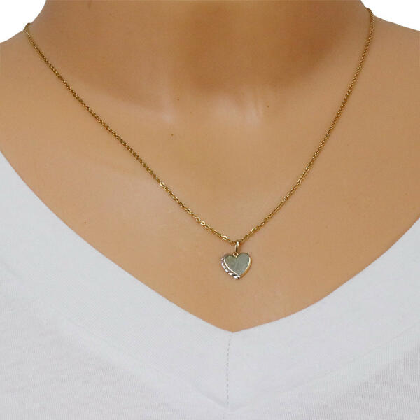 A 9K kombinált arany medál egy sima szívből áll, amelynek a felülete tükörfényes, az oldalai kissé lekerekítettek. A szív oldalsó vonalát csillogó háromszög alakú fehér arany metszések díszítik. A medálhoz tartozó láncra kerülő szem felfelé szélesedik. A medál mérete: 10 x 10 mmA láncra kerülő szem szélessége: 1,5 mmA medál súlya: 0,35 gFémjelzéssel ellátva