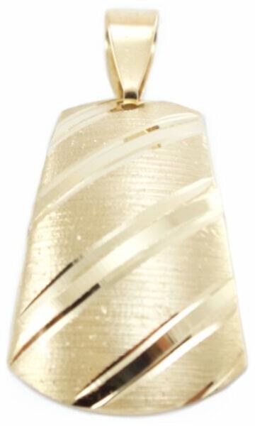 Modern fazonú, igen mutatós, véséssel és mattítással díszített, lemez kialakítású, sárga arany medál.