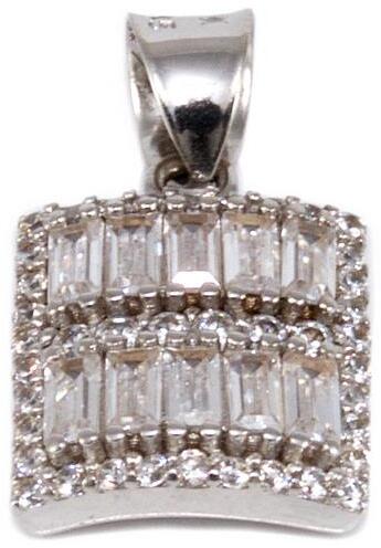 Különleges és mutatós, csillogó cirkónia kövekkel ékített szögletes, enyhén domború kialakítású ródiummal bevont arany medál.