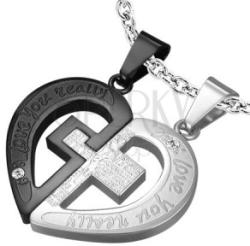 Piros medál sebészeti acélból szívkörvonal alakban, mely két félre osztható - egy fekete és egy ezüst árnyalatú. Mindkét félen gravírozott angol nyelvű felirat található "Love you really" - "Igazán szeretlek" szavakkal és apró átlátszó cirkóniákkal. Mindkét medált a közepén kereszt köt össze gravírozott spanyol nyelvű Miatyánk felirattal és Jézus alakjával. A