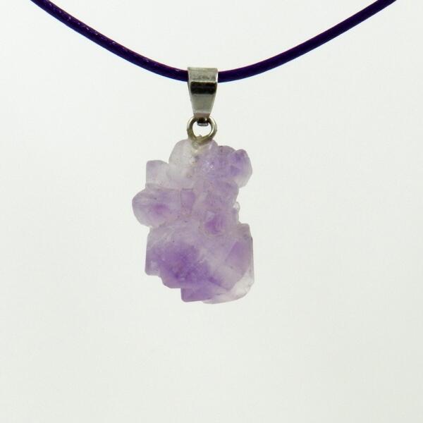 Természetes, csiszolatlan ametiszt rög medál viaszolt nyaklánccal. . Medál mérete: 2-3cm A nyaklánc mérete csúszó csomólal állítható A fotó az ékszerről készült, a színe monitoronként eltérő lehet. Az ametiszt gyógyhatása