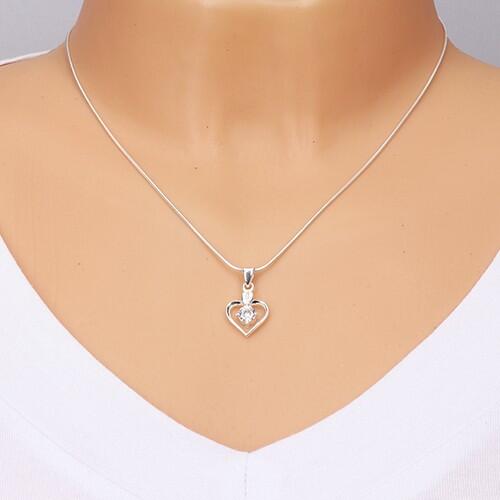 925 ezüst medál vékony szív kontúr alakban, amelyebe egy élénk, átlátszó cirkónia helyezkedik el kerek alakban. A felső részben egy szélesebb szár található függőleges bemetszéssel. A láncra kerülő szem hosszúkás és felfelé szélesedik. A medál méretei: 12 x 21 mmA medál súlya: 1,6 gA láncra kerülő szem szélessége: 3 mmFémjelzéssel ellátott. Medál lánc nél