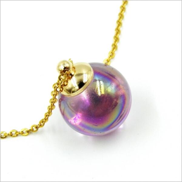 Nagyon divatos akva aura kvarc kristály gömb medál, nemesacél nyakláncon. A kristály gömbök mérete választható; -a kisebb 11-14mm-es gömbök, vagy -nagyobb 15-16mm-es gömb A nyaklánc anyaga orvosi nemesacél. Választható -ezüst színű, melynek hossza 60cm vagy -aranyozott nemesacél, hossza: 45cm Mindegyik kristálynak színjátszó fénye van, minden oldalról más-más fényű.