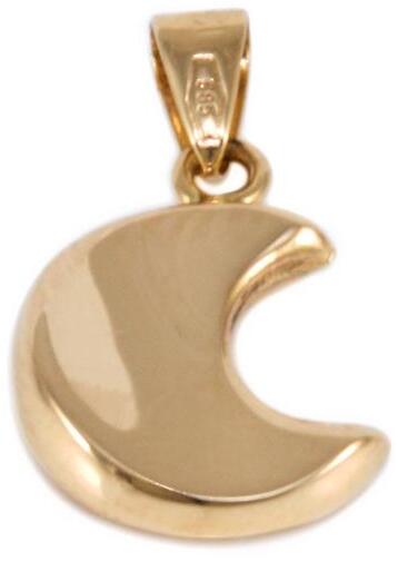 Kis méretű, könnyített kialakítású, fényes arany hold medál.