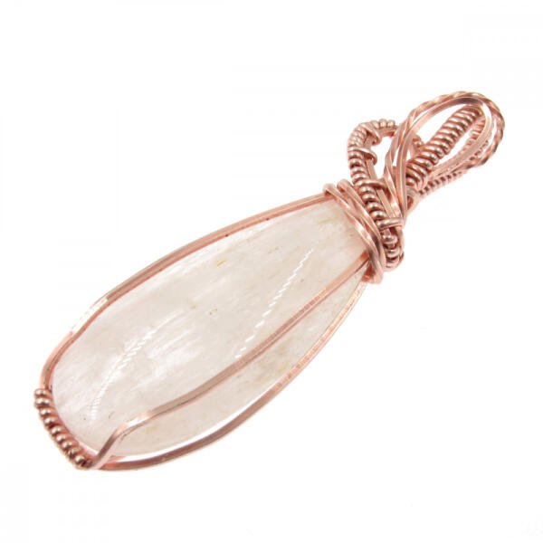 Gyönyörű selyem fényű pasztel rózsaszín kunzit medál, rózsaarany drót foglalatban. A kunzit mérete: 18*35mm teljes magassága : 57mm Visszafogott, mégis egyedi, minimál stílusú ékszert készítettem ebből a nagyon ritka, és nagyon szép, kissé áttetsző kunzit drágakőből. A kunzit az Isteni szeretet, a szív tudásának aktiválása és érzelmi gyógyulásának köve. Megny