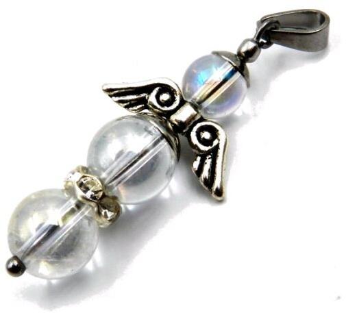 Angyal aura, vagy opál aura kvarc angyal medál. A medálkákat 6-8mm-es kerek gyöngyökből, tibeti ezüst és nemesacél alkatrészek felhasználásával készítettem. Az aura kvarcok mesterségesen előállított kristályok. Ettől nem kell megijednünk, mert hatása így kombinált lesz, a felhasznált elemek mindegyike jótékony hatással lesz szervezetünkre. Az angyal aura, vagy opál