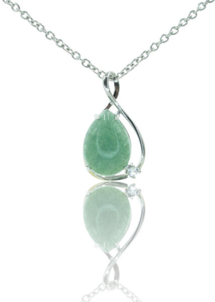 Strasszal díszített természetes zöld aventurin köves medál, "végtelen" jel foglalatban, 45cm-es orvosi acél nyakláncon. Ásvány mérete: 14*18mm Az aventurin vélt gyógyhatása