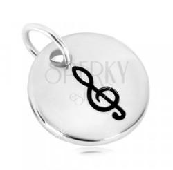 925 ezüst kerek medál. Az első oldalán egy gravírozott hangyjegy található fekete fénymázzal kitöltve. A medál felülete sima, fényes. A láncra kerülő szem kerek. Medál mérete: 10 mmLáncra kerülő szem szélessége: 3 mmSúly: 1,18 gFémjelzéssel ellátott. Medál lánc nélkül.